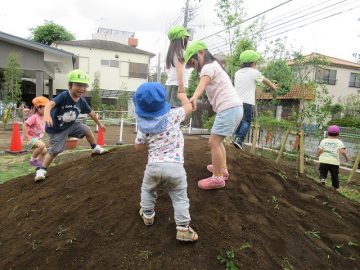 幼児(3歳児~5歳児)は友達との関わりの中で育ち、個々の成長へと繋がります。クラスを自由にし、生活のルールや知恵を自ら学び、子ども同士で遊びを楽しみます。直接体験の中から発見、喜び、工夫、思いやり、心遣い、我慢することなどに子どもたち自ら気づき、つくり出していきます。 - 食事は旬を大事にして季節を感じられるように和食中心としています。白米は日本人の体にも合い、子どもたちも「ごはん」が大好きです。また、素材にもこだわっています。食べることは元気に生きることにつながる大切な営みです。